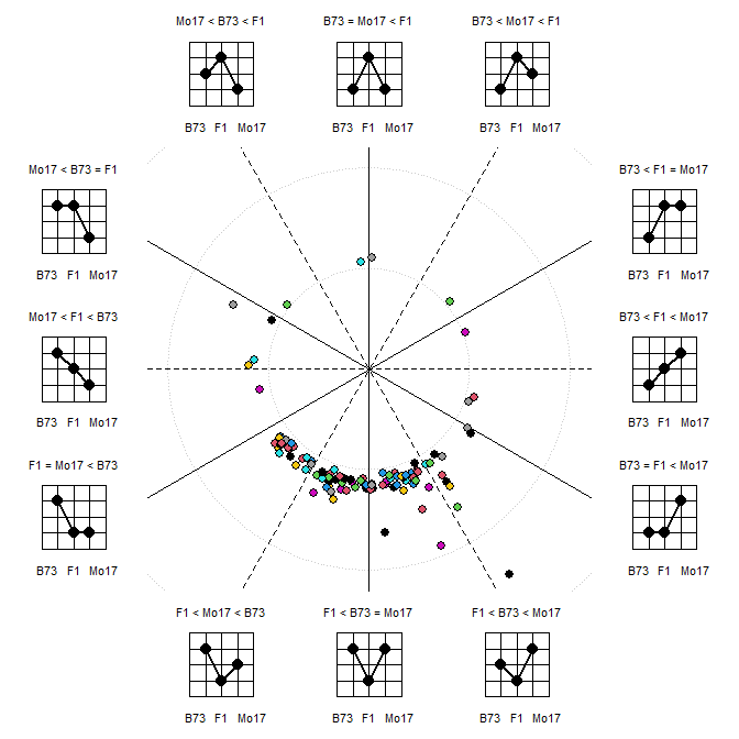 ::PolarCoordHeterPlot(x=x, gt=c("B73","B73xMo17","Mo17"), plot_lab="graph", col=1:10, thr=0.5, rev_log=exp(1))