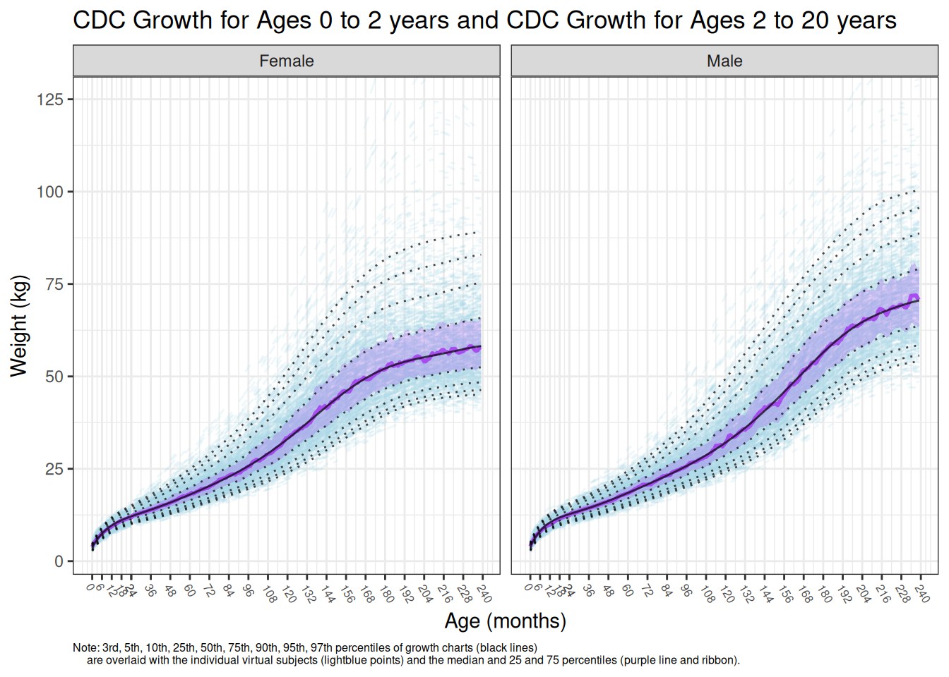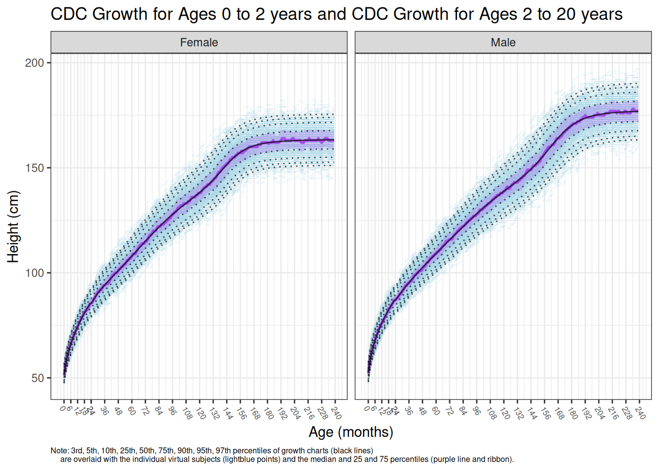 Finally, visually validate that the virtual population is reflective of the CDC growth chart data.