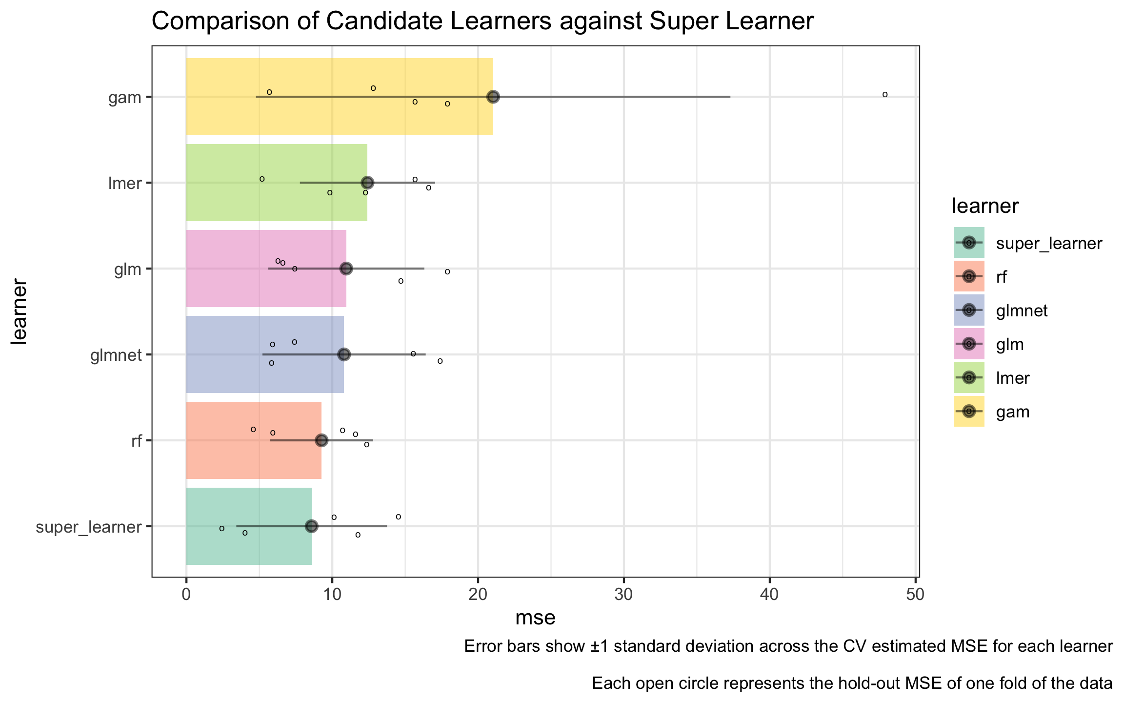 ggplot2::ggtitle("Comparison of Candidate Learners against Super Learner") +